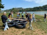 Am Mittwoch trafen wir uns alle an der Bushaltestelle. Viele waren sehr aufgeregt. Um 8:30 Uhr ist der Bus nach Saalburg losgefahren. Dort sind wir 9:30 Uhr angekommen. Zuerst haben wir die Betten in unseren Bungalows bezogen. Zum Mittag gab es Fisch mit Soße und Kartoffelbrei. Dann sind wir 3 km zur Rodelbahn gelaufen. Dort hatten wir viel Spaß. Anschließend gab es noch ein Eis und wir spielten auf dem Spielplatz. Es war sehr heiß draußen. Zur Abkühlung durften wir in der Bleilochtalsperre baden. Zum Abendessen gab es leckeren Burger. Die Disco fing um 20:00 Uhr an ging bis 22:00 Uhr. Am nächsten Morgen sind wir schon sehr früh aufgestanden. Wir haben das Frühstück sehr genossen. Danach starteten wir mit den Floßbau. Zwei Gruppen bauten ein Floß aus Brettern, Seilen und Gummireifen. Dann gab es Nudeln mit Tomatensoße. Nach dem Mittag trugen wir das Floß ins Wasser und durften es ausprobieren. Am Nachmittag haben wir ein Ballturnier gemacht. Nach dem Abendessen haben wir Lagerfeuer gemacht und Stockbrot gegrillt. Freitag mussten wir 07:30 Uhr aufstehen. Nach dem Frühstück haben wir Sachen gepackt und Zimmer aufgeräumt. 10:00 Uhr war die Abfahrt in Saalburg und um 11:00 sind wir in Osterfeld angekommen.