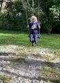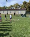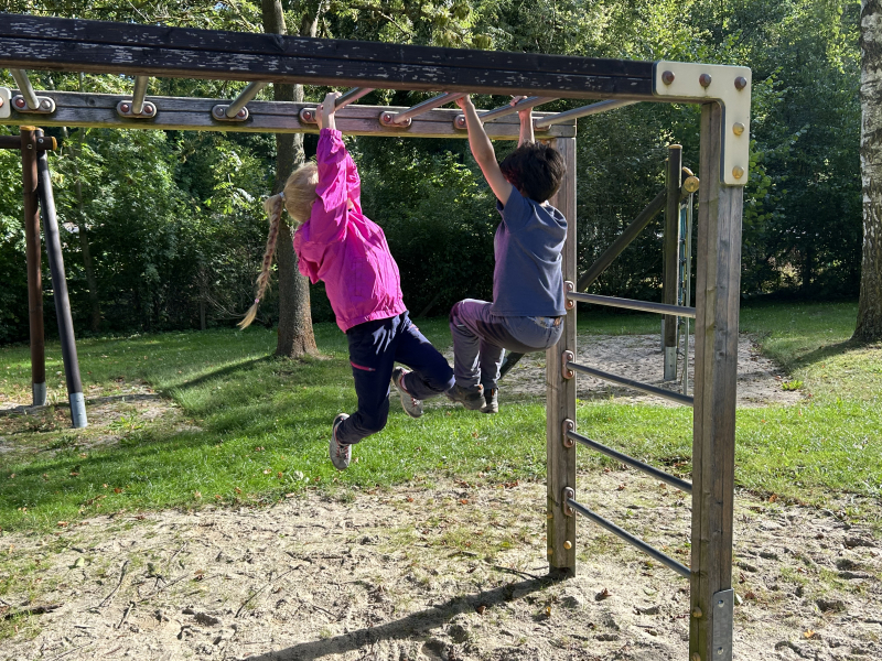 Nach der Stärkung ging es dem Waldweg entlang. Die Kinder entdeckten viele, bunte Blätter, Hagebutten, Birnenbäume und eine Blindschleiche. Es ging ein wenig quer durch den Wald, unter umgestürzten Bäumen hindurch. Eigentlich gab es kein Ziel, aber plötzlich war der Spielplatz in Waldau nicht mehr weit. Dort legten die Mädchen und Jungen die nächste Rast ein und der zweite Wunsch: Fußball spielen wurde erfüllt.