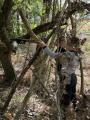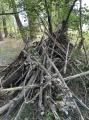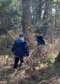 Nach einem langen Spielplatzaufenthalt ging es zurück in den Wald, denn es musste noch ein Platz für eine Bude gesucht werden. Unterwegs sammelten die Kinder bereits Baumaterial und räumte so gleich ein wenig den Wald auf. Bald war der richtige Platz gefunden und alle halfen eifrig mit, passende Behausungen zu bauen.