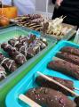 Am Auftrittstag bauten engagierte Eltern in Zusammenarbeit mit dem Hausmeister und den Stadtmitarbeitern Pavillons, Tische und Bänke auf. Der Grill brannte und bald roch es nach Bratwurst. Es gab aber auch leckeren Kuchen, Muffins, Kaffee und kalte Getränke. Diese waren auch wirklich nötig bei über 30 Grad. Alle schwitzten schon vorm Tanzen, warteten aber gespannt....