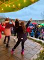 ..schallte es über den Schulhof und alle Mädchen und Jungen bewegten sich unter der Anleitung der Tanzprofis Caro und Jura mit gekonnten Schritten und Hüftbewegungen. Die Gäste auf dem Schulhof nahmen den Rhythmus auf und klatschten freudig im Takt mit.