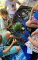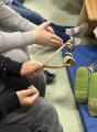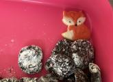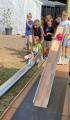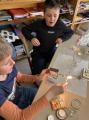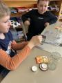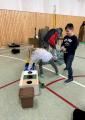 Am BiBa angekommen, gab es erst einmal eine Eispause. Danach gingen die Kinder an ihre Arbeit und verpackten ihre Eier gruppenweise in hoffentlich ausreichend gepolsterte Naturverpackungen. Beim Anschließenden Falltest überlebte ein Ei den Sturz. Herzlichen Glückwunsch an die Gruppe, die ihr rohes Ei am besten einpackten.