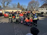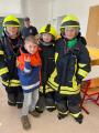An einer weiteren Station durften die Kinder die Einsatzkleidung der Feuerwehrkameraden anziehen und sich die Feuerwehrautos genauer anschauen.