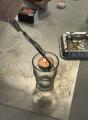 An der vierten Station ging es heiß her. Die Kinder übten, ein Streichholz angstfrei anzuzünden und zu löschen. Danach experimentieren sie mit Kerzen, Sauerstoff und Backpulver. Sie lernten, dass ein Gas entsteht, wenn Backpulver mit Wasser gemischt wird. Dieses Gas kann die Flamme einer Kerze löschen, da es schwerer ist als der Sauerstoff.