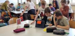 In der freien Lesezeit wurde im Angebot der Bibliothek gestöbert. Alle haben ein passendes Buch zum Hineinschnuppern gefunden oder ein Spiel gespielt.