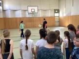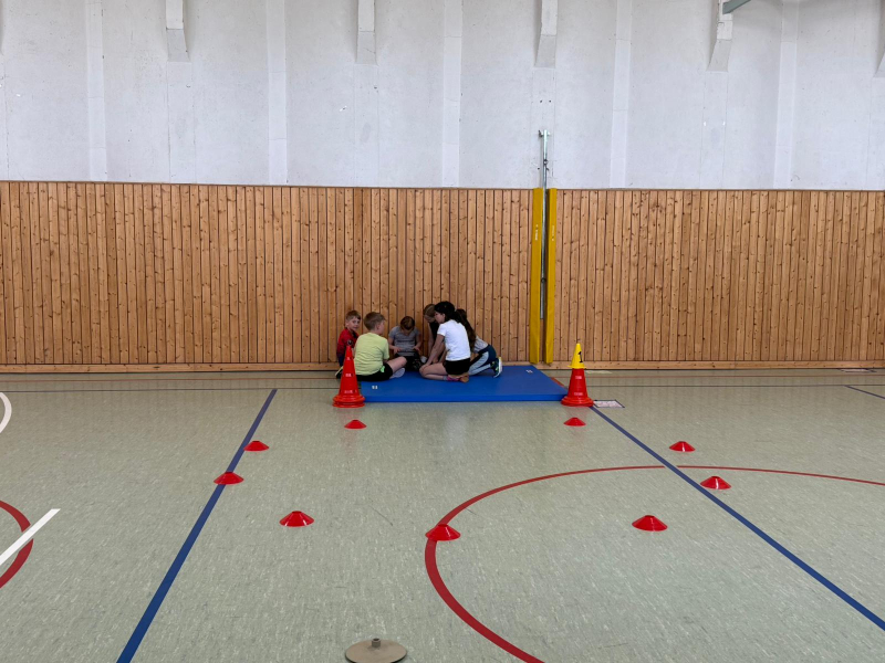 So konnten die Schülerinnen und Schüler ihre Teamfähigkeit zum Beispiel an der Station „Spiel und Spaß“ unter Beweis stellen, indem sie gemeinsam Koordinationsübungen mit Ball und Leitkegeln ausführten.