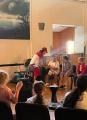 Einige Schülerinnen und Schüler der Grundschule Osterfeld waren ebenfalls eingeladen. Sie wollten vor allem den Seniorinnen und Senioren sowie den Mitarbeiterinnen ein kleines Programm präsentieren. Unter der Leitung von Frau Wiegand und Frau Eisert sangen die Kinder bekannte Lieder. Danach tanzten sie noch ihren Sommertanz "Jambo Mambo", bei dem jeder Fuß mitwippen musste.