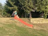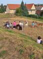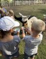 Die Mädchen und Jungen interessierten sich aber auch für die Katzen, Hasen und Hühner. Es war ein richtiger Bauernhofausflug. Kurz vor dem Mittagessen konnten die Kinder auch Fußball spielen und auf dem Trampolin hüpfen.