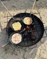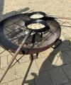 Mittags gab es dann Pfannenpizza - süß mit Apfelmus oder herzhaft mit Salami und Käse. Die Pfannen standen auf Feuerschalen und versprühten ein Gefühl von Lagerfeuer und Camping.