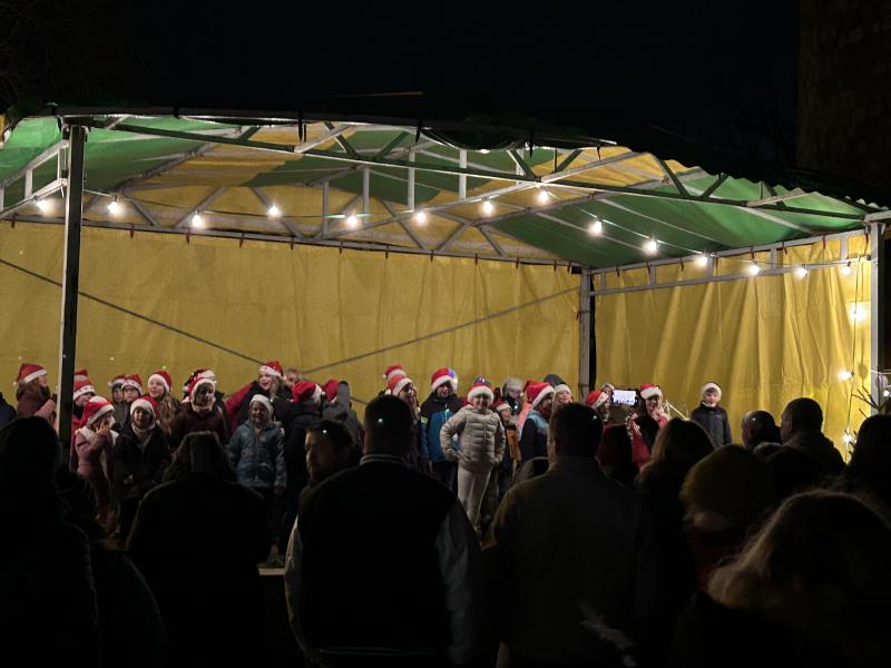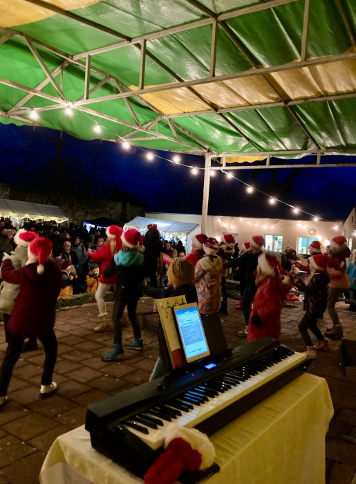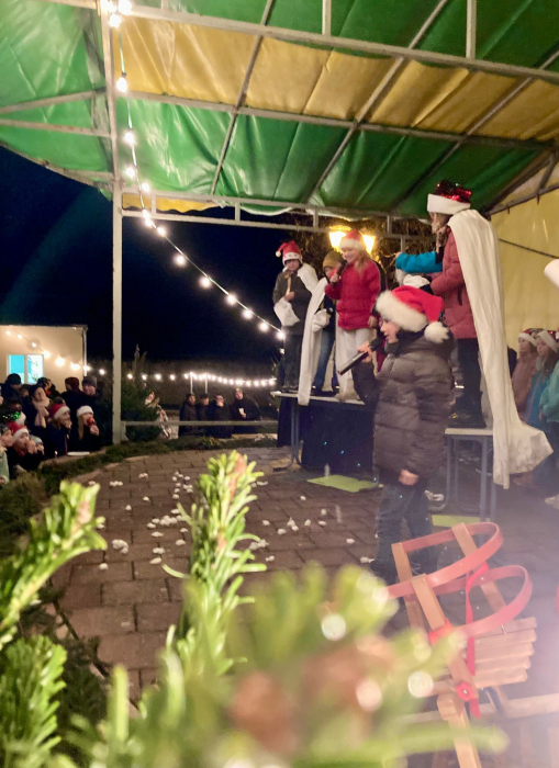 Reges Treiben auf dem Schulhof – überall riecht es lecker und viele Lichter leuchten. Kinder schwirren aufgeregt herum und Eltern schmücken ihre Stände. Am 06.12. fand der 2. Adventsmarkt der Grundschule Osterfeld statt. Trotz des regnerischen Wetters kamen sehr viele Eltern, Großeltern und Gäste auf den Schulhof. Die Mädchen und Jungen hatten unter der Leitung von Frau Wiegand und Frau Eisert ein kunterbuntes, weihnachtliches Programm vorbereitet. Mit einem schwungvollen „Jingle Bells Rock“ begann das Programm. Dieser Tanz steckte sofort das Publikum an und half gegen das nass-kalte Wetter. Anschließend eröffneten die Schulleiterin Frau Gärtner und der Elternratsvorsitzende Herr Riehm den Adventsmarkt. Besonders wichtig war es Herrn Riehm zu erwähnen, dass dieser Markt durch die Zusammenarbeit aller für unsere Kinder entstanden ist. Danach traten alle fünf Klassen und die Tanzgruppe mit Liedern, kleinen Theaterstücken, Gedichten und flippigen Tänzen auf. Am Ende tanzten und sangen alle Kinder und Gäste gemeinsam.
