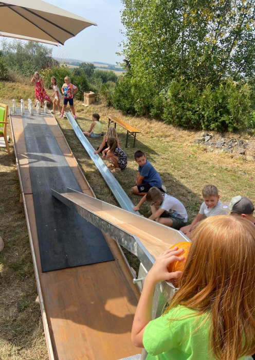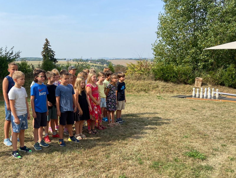 Aufgeregte Schüler und Schülerinnen standen am 12.05.2025 mit Vorfreude an der Bushaltestelle in Osterfeld und erwarteten voller Spannung die Abfahrt des Buses in Richtung Sondershausen. Die Klassenfahrt der 4. Klasse stand auf dem Programm. Nachdem sich die Kinder von ihren Eltern verabschiedet hatten und die Koffer verstaut waren, setzte sich der Bus mit heiterer Stimmung an Board in Bewegung. In der Jugendherberge angekommen gab es für die 23 Mädchen und Jungen viel zu entdecken. Das weitläufige Gelände hielt zahlreiche Freizeitmöglichkeiten bereit und auch die Zimmer wollten bezogen und für die nächsten drei Tage eingerichtet werden. Nach dem Mittagessen gab es für die 4. Klasse gleich zwei Programmpunkte, die für viel Begeisterung sorgten. Beim Teambike, einem Fahrrad auf dem 7 Personen gleichzeitig in die Pedale treten müssen, konnten die Schüler ihr Gemeinschaftsgefühl stärken. Am späten Nachmittag wanderten dann alle gemeinsam zur nahegelegenen Sommerrodelbahn, um sich dort bei einer rasanten Talfahrt den Wind um die Nase wehen zu lassen. Der erste Tag endete mit einem entspannten Grillabend und gut gelaunten Gesprächen.