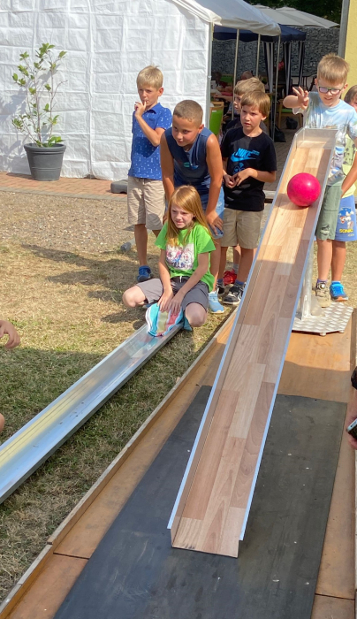 Unterstützt wurden wir wie jedes Jahr von der Verkehrswacht Naumburg. Sie bauten auf dem Schützenplatz einen Radparcours auf. Alle Kleinen und Großen konnten ihr Können auf dem Roller und Fahrrad beweisen. Hierbei war die Kenntnis über Verkehrsschilder genauso wichtig wie das sichere Beherrschen des Rades oder Rollers.