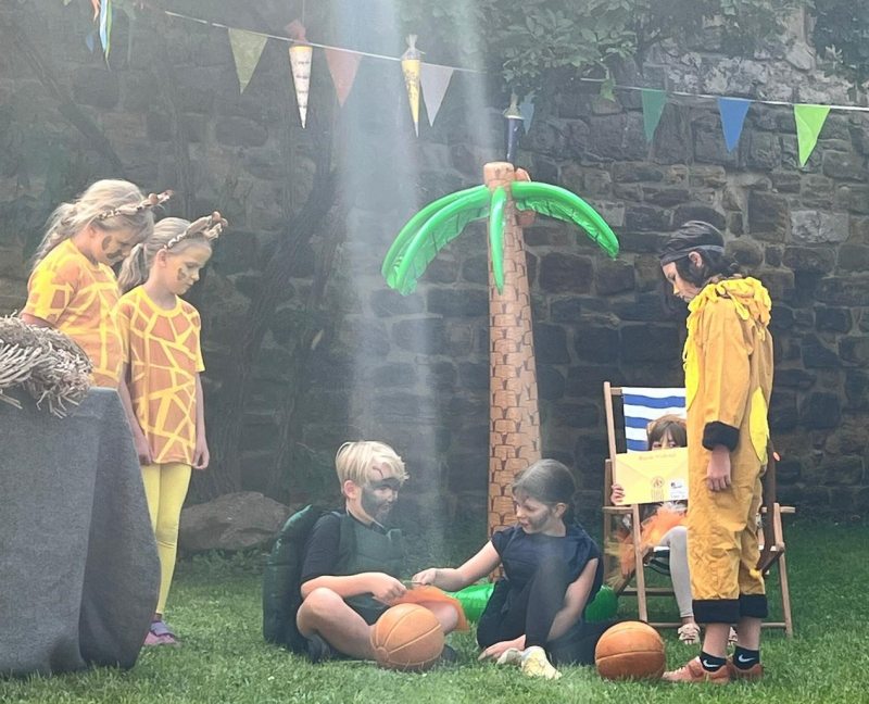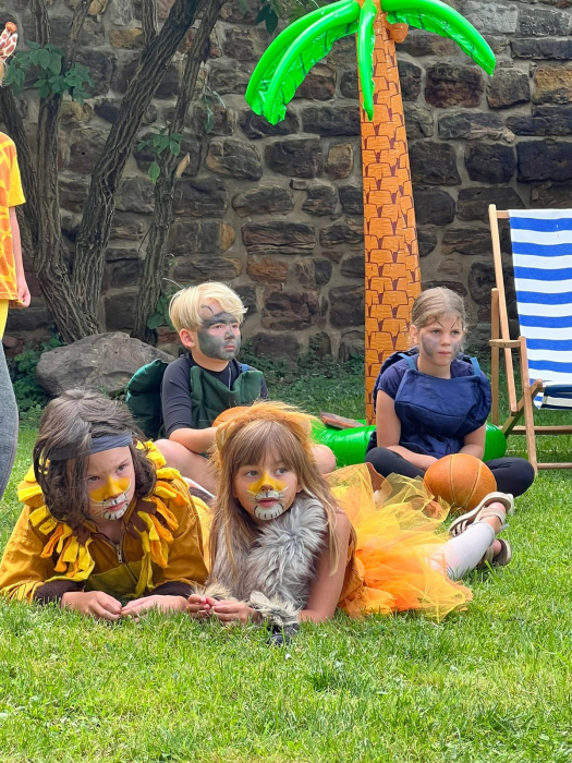 Die Sonne strahlt vom Himmel. Die Naturbühne am Matzturm ist festlich mit Luftballons und Zuckertüten geschmückt. Auf der Bühne stehen Kinder, die als Löwen, Nilpferde, Affen und andere Urwaldtiere verkleidet sind. Frau Wiegand spielt feierliche Musik und 24 kleine Schulanfängerinnen und Schulanfänger kommen durch das Spalier von Eltern und Großeltern zur Bühne gelaufen. Sie sind heute die Hauptpersonen, denn sie werden in die Grundschule Osterfeld eingeschult. Die Feierstunde beginnt mit dem Theaterstück „Der Löwe, der nicht schreiben konnte“. Aufgeführt wird es von den Zweit- und Drittklässlern unter Leitung von Frau Wiegand und Frau Eisert. Im Anschluss zeigen die Kinder noch ihren Sommertanz.