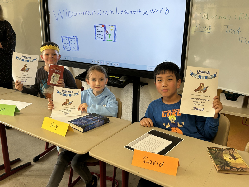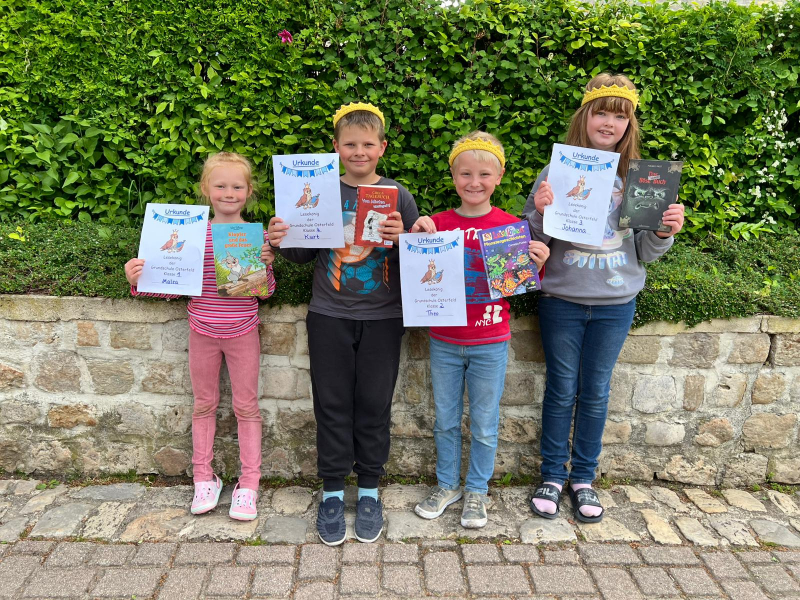 Wir gratulieren allen Leseköniginnen und dem Lesekönig. Es war wieder eine wunderbare Auswahl an spannenden Geschichten, die sicher auch alle anderen Kinder zum Lesen anregt. Wir bedanken uns auch bei unserer Lesejury und Frau Wiegand für die Organisation.