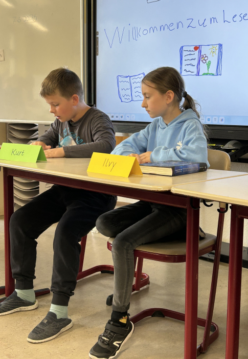 Am Ende lasen noch die Viertklässlerinnen aus ihren wunderbaren Büchern vor. Einen Klassiker trugen sie dann im zweiten Teil, den ungeübten Text, vor. Das doppelte Lottchen versprühten schon erste Vorfreude auf die Sommerferien. Nach allen Lesebeiträgen setzte sich Kurt dank seiner hervorragenden Betonung durch.