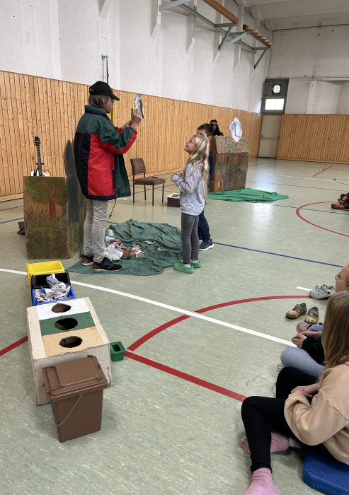 Es war wieder eine schwungvolle und lehrreiche Reise, die die Mülltrennung auffrischte. Vielen Dank an Eric Udo Zschiesche und sein Talent, Mülltrennung, Umweltschutz und Waldleben in ein kurzweiliges Theaterstück einzubetten.
