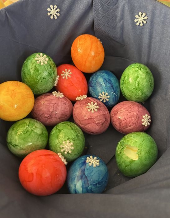 Am letzten Schultag vor den Weihnachtsferien fand in der Grundschule Osterfeld ein Projekttag statt. In allen Klassen wurde gebastelt, gesungen und gegessen. Die Eltern stellten für jede Klasse ein Buffet zusammen. Es gab Schnittchen in Form von Tannenbäumen, bunte Eier mit Schneeflocken, leckere Spießchen aus Trauben, Würstchen und Käse und Waffeln. Die Kinder konnten jederzeit naschen und sich für die kniffeligen Bastelaufgaben stärken.