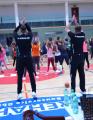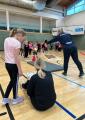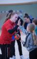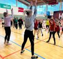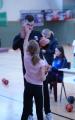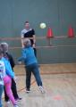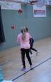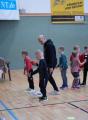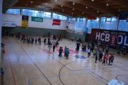 Nach und nach kamen alle 105 Mädchen und Jungen in der Halle an. Nach einer kurzen Begrüßung durch Herrn Hoppert und Frau Gärtner und einem Ständchen für das Geburtstagskind startete die Erwärmung. Zu den rhythmischen Klängen von "Tante Rita" wackelten sich alle Beteiligten warm, um danach Höchstleistungen beim Fangen, Werfen, Prellen und Laufen erzielen zu können.
