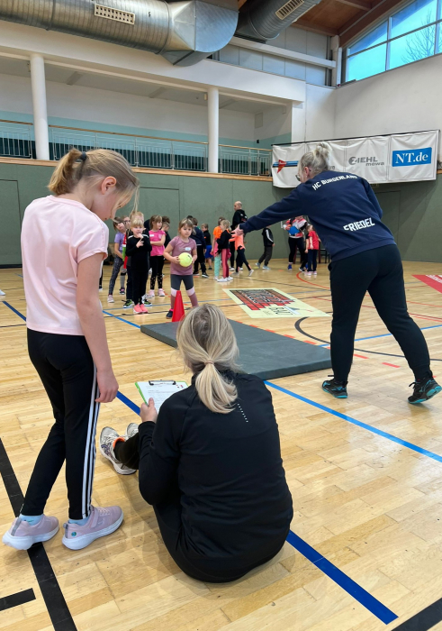 Insgesamt 14 Trainerinnen, Trainer, Spielerinnen und Spielern standen an den Stationen bereit, um die Übungen sportlich zu begleiten, zu motivieren und gelegentlich auch zu helfen. Mit Freude und Ehrgeiz erzielten viele Kinder Erfolge und sammelten Punkte für den Hanniballpass. Der Spaß stand dabei immer im Vordergrund und wer weiß, ob sich dabei auch ein neues Handballtalent gezeigt hat.