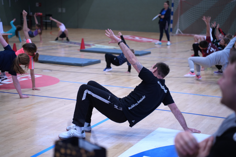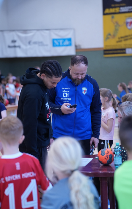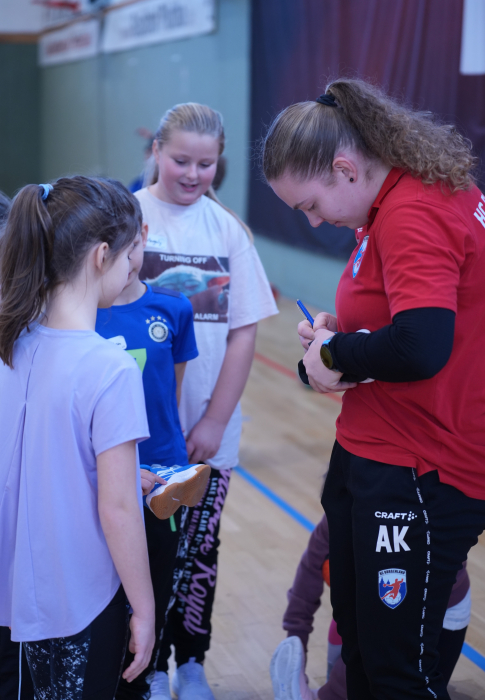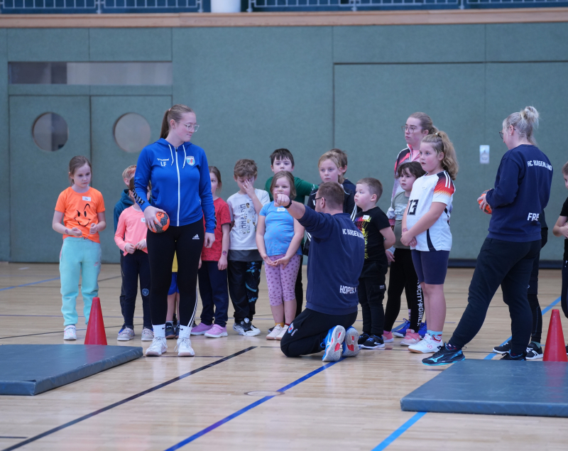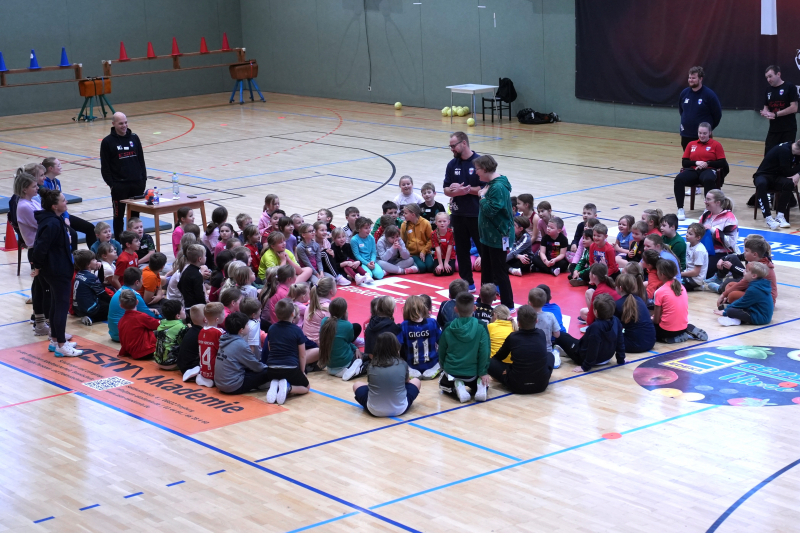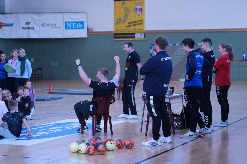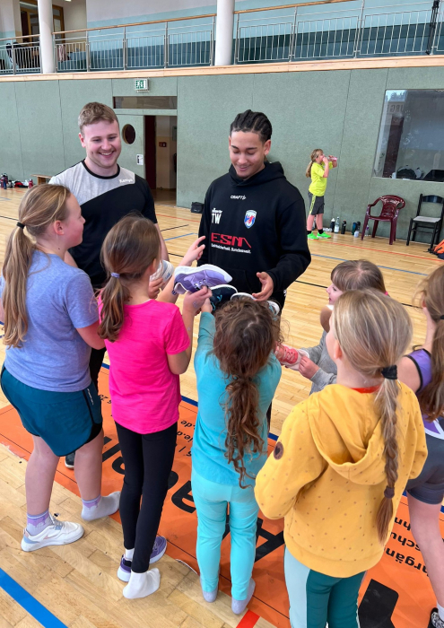 Nach knapp 90 Minuten hatten alle Kinder alle Stationen bewältigt und konnte die restliche Zeit im freien Spiel nutzen. Wichtig war den Kindern auch, Autogramme zu sammeln. Wann bekommt man schon mal die Chance, so nah an die Spielerinnen und Spieler der 1. Mannschaft zu kommen und mit ihnen Handball zu spielen?